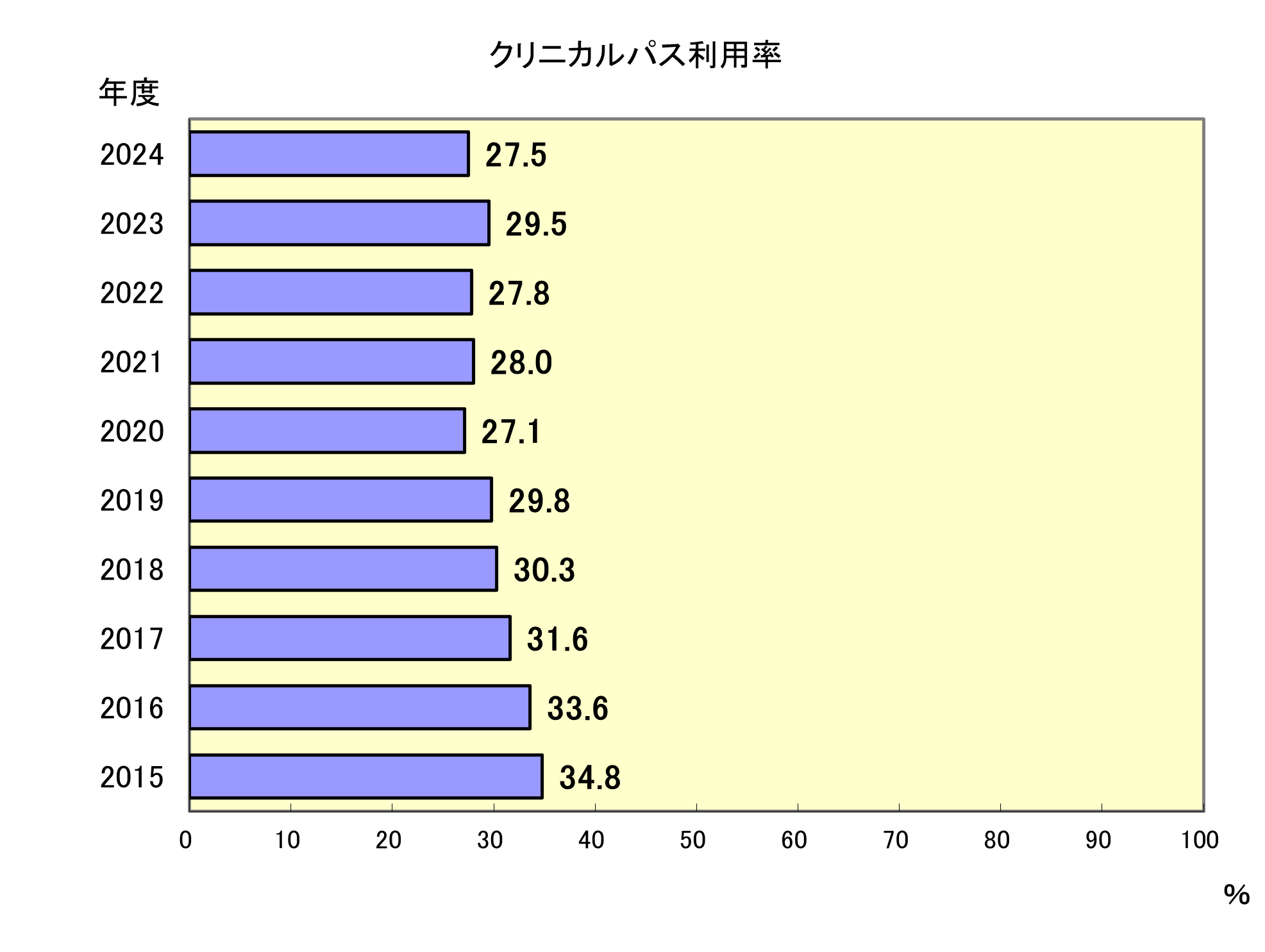 - 2024年度のクリニカルパス利用率は27.5%で、前年から2ポイント減少しました。